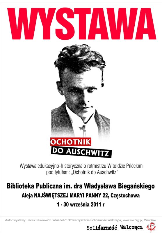 Od 1 do 30 września 2011 r. w Bibliotece Publicznej im. dr. Władysława Biegańskiego w Częstochowie (Al. Najświętszej Maryi Panny 22) prezentowana jest wystawa „Rotmistrz Witold Pilecki – ochotnik do Auschwitz”.