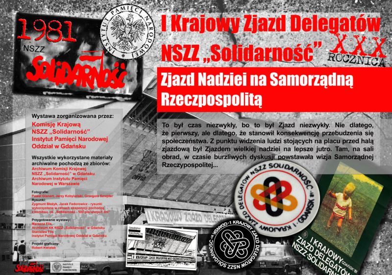 Z okazji przypadającej w tym roku 30. rocznicy I Krajowego Zjazdu Delegatów NSZZ „Solidarność” Komisja Krajowa NSZZ „Solidarność” wraz z pionem edukacyjno-naukowym gdańskiego oddziału IPN przygotowała wystawę historyczną pt. „I Krajowy Zjazd Delegatów NSZZ »Solidarność«. Zjazd Nadziei na Samorządną Rzeczpospolitą”.