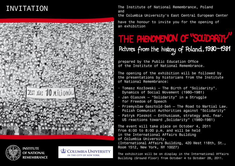 W dniu 4 października 2011 r. na Columbia University w Nowym Jorku odbyło się otwarcie wystawy „Fenomen »Solidarności«. Migawki z dziejów Polski, 1980–1981”, przygotowanej przez Biuro Edukacji Publicznej IPN