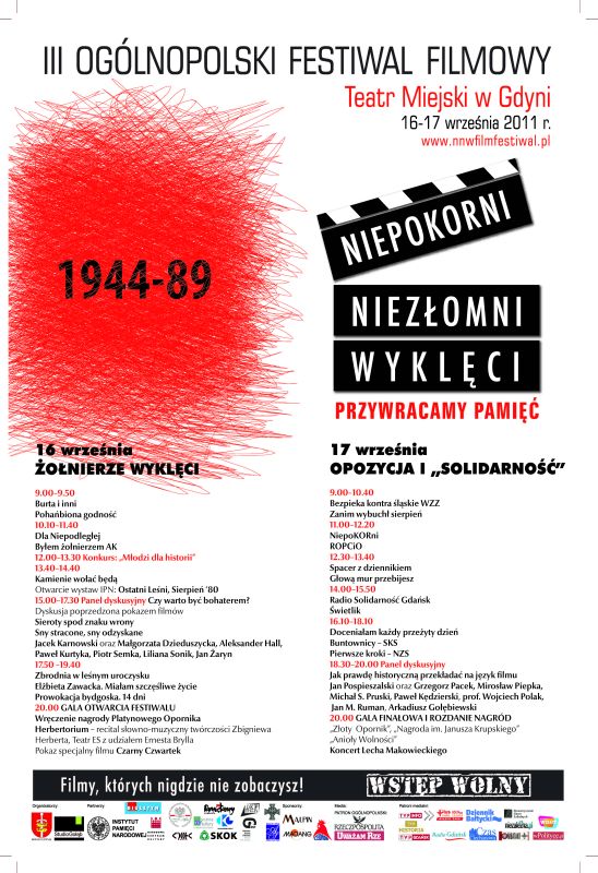 16 oraz 17 września br. w gdyńskim Teatrze Miejskim im. W. Gombrowicza przy ul. gen. Bema 26 odbyła się trzecia już edycja festiwalu filmowego pt. „Niepokorni, Niezłomni, Wyklęci”.