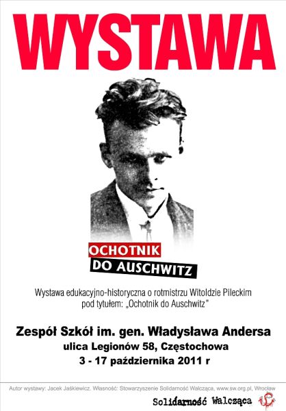 W dniach od 3 do 17 października 2011 r. w Zespole Szkół im. gen. Władysława Andersa w Częstochowie (ul. Legionów 58) jest prezentowana wystawa „Rotmistrz Witold Pilecki – ochotnik do Auschwitz”.