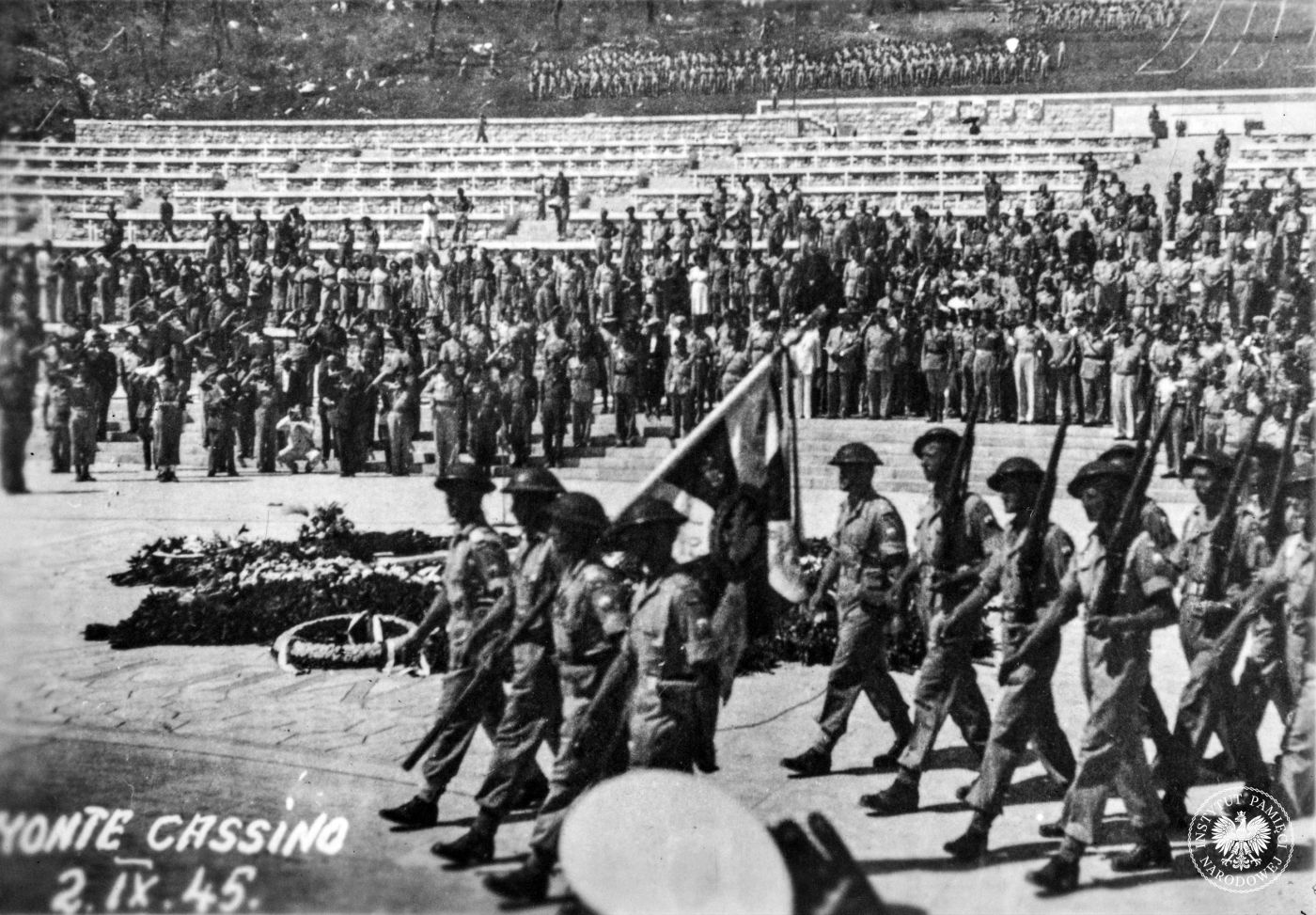 14. Polscy żołnierze na Polskim Cmentarzu Wojennym znajdującym się poniżej Monte Cassino.