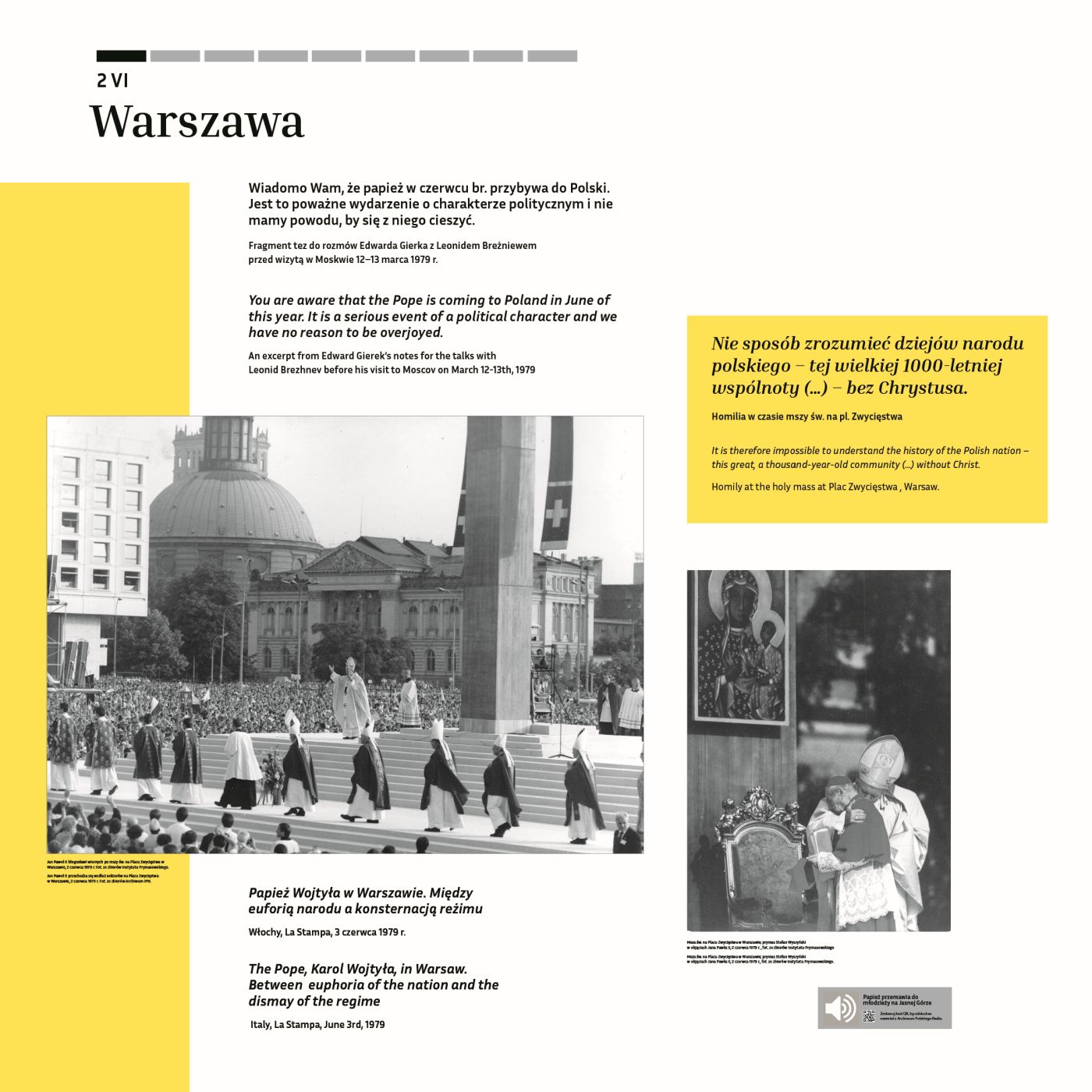 Wystawa IPN „»Wstańcie, chodźmy…« Pierwsza pielgrzymka Jana Pawła II do Polski” na Zamku Królewskim w Warszawie – 2 czerwca 2019