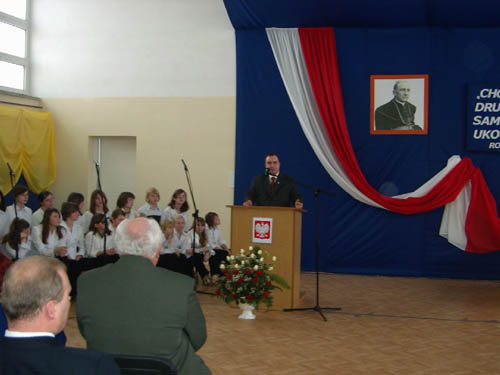 Uroczystości rozpoczęły się Mszą św. pod przewodnictwem ks. biskupa łomżyńskiego Stanisława Stefanka, któremu towarzyszył biskup pomocniczy Tadeusz Zawistowski. Podczas mszy został poświęcony sztandar szkoły. Po mszy nastąpił przemarsz kilkuset uczestników ze sztandarem do budynku szkoły. Drugą część uroczystości rozpoczęła pani wójt Barbara Wasiulewska, która powitała zaproszonych gości. Wśród nich byli księża biskupi łomżyńscy Stanisław Stefanek i Tadeusz Zawistowski, wicemarszałek senatu Krzysztof Putra, przewodniczący klubu parlamentarnego PiS Przemysław Gosiewski, posłowie: Jacek Bogucki, Roman Czepe i Lech Kołakowski, wojewoda podlaski Jan Dobrzyński, dyrektor białostockiego oddziału IPN prof. dr hab. Cezary Kuklo, samorządowcy ziemi łomżyńskiej, uczniowie i absolwenci szkoły w Kołakach Kościelnych. Część oficjalną związaną z nadaniem imienia szkole oraz przekazaniem sztandaru i ślubowaniem prowadził dyrektor Zespołu Szkół Henryk Rakoczy oraz przewodniczący Rady gminy Ryszard Kołakowski. W oficjalnych wystąpieniach goście, m.in. dyrektor oddziału IPN w Białymstoku prof. Cezary Kuklo, odnieśli się do trafnego wyboru patrona szkoły, przypominając jego sylwetkę, duchowe przymioty oraz czasy, w jakich żył i pracował na rzecz ojczyzny i Kościoła. Kolejnym punktem uroczystości było poświęcenie tablicy pamiątkowej patrona szkoły przez ks. dziekana Jerzego Samsela oraz zwiedzanie wystawy przygotowanej przez białostocki oddział IPN i Archiwum Archidiecezjalne w Białymstoku „Arcybiskup Romuald Jałbrzykowski metropolita wileński (1876-1955)”. Po wystawie oprowadzała gości jej współautorka Ewa Rogalewska (OBEP). Uroczystości uświetnił koncert Orkiestry Kameralnej z Łomży.