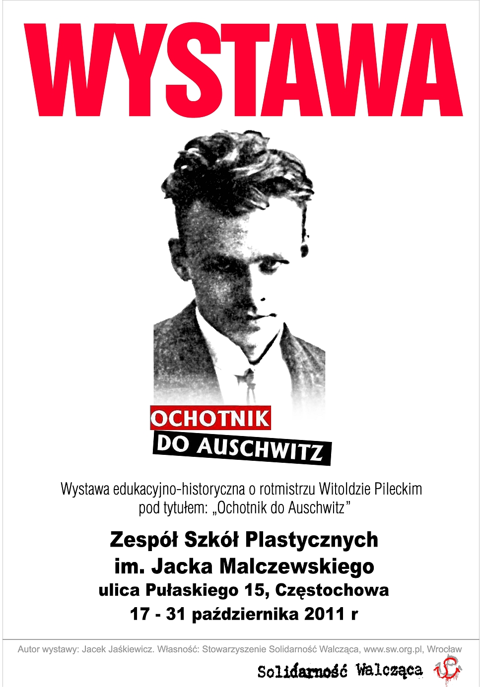 Od 17 do 31 października 2011 r. w Zespole Szkół Plastycznych im. Jacka Malczewskiego w Częstochowie (ul. Pułaskiego 15) jest prezentowana wystawa „Rotmistrz Witold Pilecki – ochotnik do Auschwitz”. Ekspozycja została przygotowana przez Jacka Jaśkiewicza ze Stowarzyszenia Solidarność Walcząca. Organizatorem prezentacji jest OBEP IPN w Katowicach wraz z Zespołem Szkół Plastycznych im. Jacka Malczewskiego w Częstochowie oraz Stowarzyszeniem Solidarność Walcząca we Wrocławiu.
