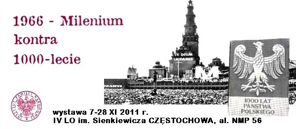 W dniach od 7 do 28 listopada 2011 r. w IV Liceum Ogólnokształcącym im. H. Sienkiewicza w Częstochowie (al. NMP 56) jest prezentowana wystawa „1966 – Milenium kontra 1000-lecie”.