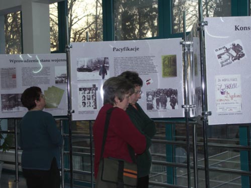 Zebranych gości przywitał dyrektor szkoły Zbigniew Pawlik. Ceremonię otwarcia zaszczycili swą obecnością burmistrz Karlina Waldemar Miśko i przewodniczący Rady Miejskiej – Tomasz Rusiecki oraz dyrektorzy i nauczyciele placówek oświatowych w Karlinie. Wśród zebranych gości byli także członkowie Związku Kombatantów i Sybiraków. Pracownik Oddziałowego Biura Edukacji Publicznej IPN w Szczecinie Grzegorz Czapski wygłosił krótki wykład prezentujący realia stanu wojennego na Pomorzu Zachodnim. Na koniec wszyscy zebrani słuchali pieśni patriotycznych w wykonaniu chóru „PASSIONATO” z Karlina. Wystawa „Stan wojenny” prezentowana będzie w Gimnazjum w Karlinie do 10 kwietnia 2006r w godzinach 8.00–16.00. Wstęp wolny. Do jej obejrzenia serdecznie zapraszamy.