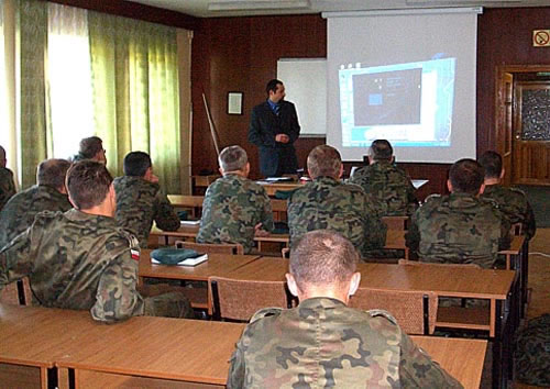 Referat skierowany był do kadry zawodowej z Centrum Szkolenia Wojsk Lądowych wDrawsku Pomorskim. Spotkanie odbyło się w Klubie Garnizonowym w Olesznie.Integralną częścią wystąpienia była prezentacja multimedialna, po wykładziemiała miejsce ożywiona dyskusja i liczne pytania skierowane do prelegenta.