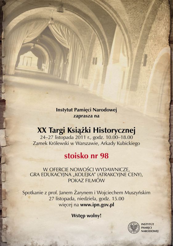 Od 24 do 27 listopada w Arkadach Kubickiego Zamku Królewskiego w Warszawie odbywały się XX Targi Książki Historycznej. Jak zwykle jednym z głównych wystawców był Instytut Pamięci Narodowej, który oferował odwiedzającym m.in.
