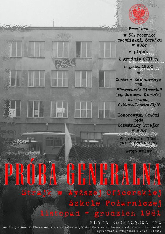Premiera filmu, w 30. rocznicę pacyfikacji Strajku w WOSP, odbyła się 2 grudnia 2011 r. w Centrum Edukacyjnym IPN „Przystanek Historia” im. Janusza Kurtyki w Warszawie, ul. Marszałkowska 21/25. Honorowymi gośćmi byli uczestnicy strajku w WOSP. Po pokazie filmu uczestnicy spotkania wzięli udział w panelu dyskusyjnym.