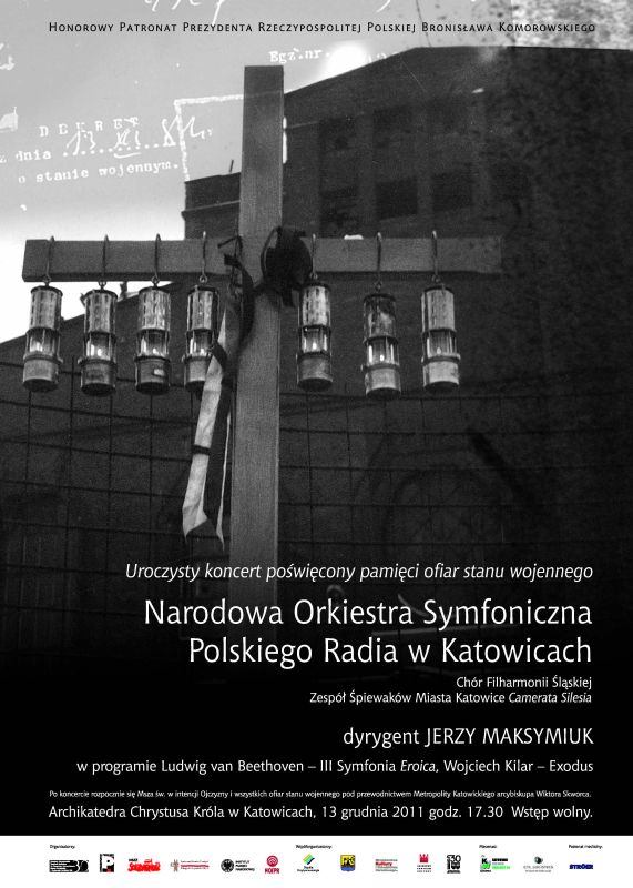 17.30 – uroczysty koncert Narodowej Orkiestry Symfonicznej Polskiego Radia w Katowicach, poświęcony pamięci ofiar stanu wojennego, w Archikatedrze Chrystusa Króla w Katowicach pod batutą Jerzego Maksymiuka z udziałem Chóru Filharmonii Śląskiej (przygotowanie chóru: Jarosław Wolanin) i Zespołu Śpiewaków Miasta Katowice „Camerata Silesia” (przygotowanie chóru: Anna Szostak). W programie: III Symfonia „Eroica” Ludwiga van Beethovena oraz „Exodus” Wojciecha Kilara.