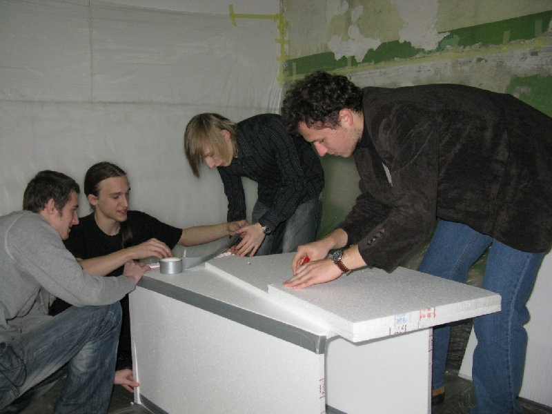 W drugiej części budowali domki ze styropianu, nawiązujące do tych, które stworzyli stoczniowcy w czasie strajku w Stoczni im. Komuny Paryskiej w Gdyni w sierpniu 1980 r.