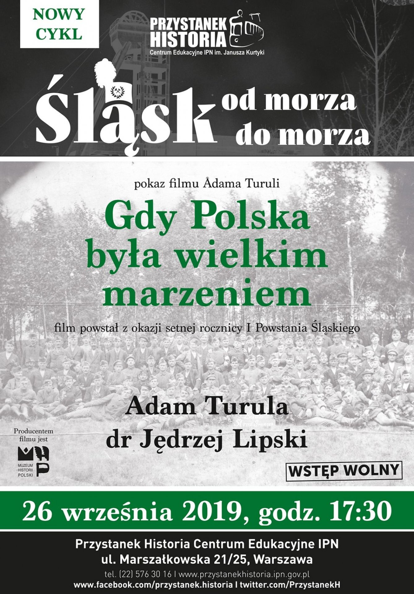 26 września 2019 w Centrum Edukacyjnym IPN im. Janusza Kurtyki „Przystanek Historia” odbyło się spotkanie z cyklu „Śląsk od morza do morza”. Goście obejrzeli film Adama Turuli „Gdy Polska była wielkim marzeniem”. Rozmowę z reżyserem poprowadził dr Jędrzej Lipski.