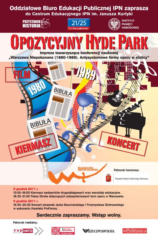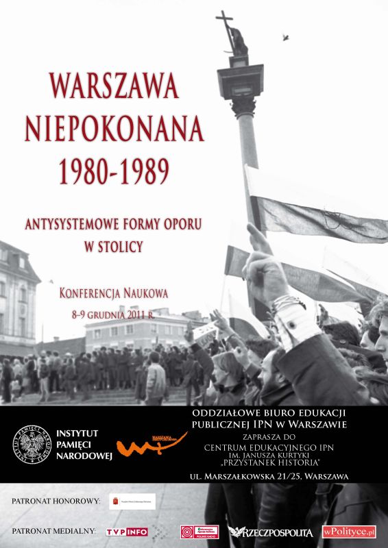 W dniach 8–9 grudnia 2011 r. w Centrum Edukacyjnym IPN im. Janusza Kurtyki „Przystanek Historia” przy ul. Marszałkowskiej 21/25 odbyła się konferencja naukowa „Warszawa niepokonana (1980–1989). Antysystemowe formy oporu w stolicy”. Sesja przygotowana została przez Oddział IPN w Warszawie pod honorowym patronatem Hanny Gronkiewicz-Waltz, Prezydent Miasta Stołecznego Warszawy i patronatem medialnym TVP Info, Informacyjnej Agencji Radiowej, „Rzeczpospolitej” i portalu wPolityce.pl.