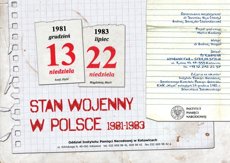 Podczas konferencji został zaprezentowany najnowszy kalendarz historyczny na rok 2012 „Stan wojenny w Polsce 1981–1983”, przygotowany przez katowicki IPN. Zaprezentowane zostały także inne wydawnictwa katowickiego oddziału IPN, opublikowane w roku 2011. Kalendarz zawiera kalendarium stanu wojennego, opracowane przez Andrzeja Sznajdera, autorem tekstów jest dr Jarosław Neja. Projekt graficzny opracował Marcin Niedurny. Kalendarz został opatrzony wstępem dr. Andrzeja Drogonia, dyrektora Oddziału IPN w Katowicach. Zdjęcia wykorzystane w kalendarzu pochodzą ze zbiorów Instytutu Pamięci Narodowej, Społecznego Komitetu Pamięci Górników KWK „Wujek” poległych 16 grudnia 1981 r. oraz Stanisława Jakubowskiego.