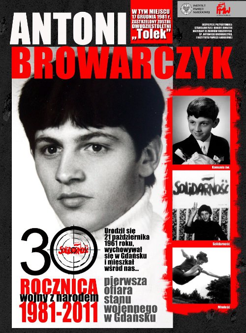 20 stycznia br. została odsłonięta w Sopocie wystawa plenerowa „Antoni Browarczyk. Pierwsza ofiara stanu wojennego w Gdańsku”. Plansze wystawy stanęły w bezpośrednim sąsiedztwie Pomnika Sopocian, przy Urzędzie Miasta Sopotu (ul. Kościuszki 25/27).