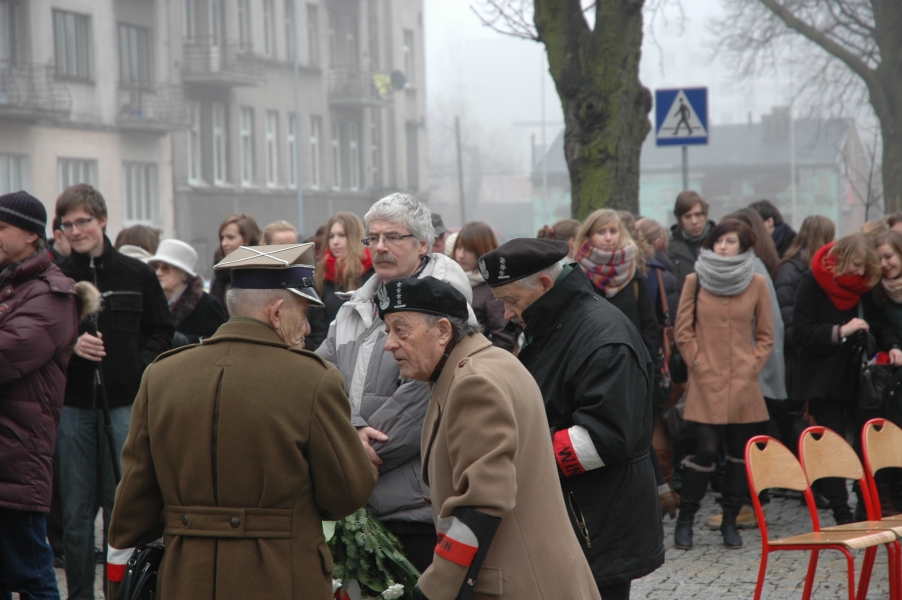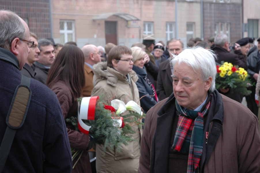 Uroczyste złożenie przed Pomnikiem Ofiar Komunizmu wiązanek kwiatów stało się pierwszym elementem tegorocznych łódzkich obchodów Narodowego Dnia Pamięci „Żołnierzy Wyklętych”. Zebranych powitał Marek Drużka, dyrektor Oddziału Instytutu Pamięci Narodowej w Łodzi. Przed pomnikiem głos zabrali przedstawiciele organizacji kombatanckich, którym przede wszystkim dedykowane były uroczystości: kpt. Edmund Kowalczyk, prezes Zarządu Obszaru Centralnego Zrzeszenia „Wolność i Niezawisłość”; kpt. Ryszard Kozłowski, przewodniczący Oddział Łódzkiego Związku b. Żołnierzy Konspiracyjnego Wojska Polskiego oraz Kazimierz Skibicki, w im. prezesa Związku Więźniów Politycznych Okresu Stalinowskiego. Wśród delegacji w imieniu Wojewody Łódzkiego przybyła Wiesława Zewald, doradca Wojewody oraz Andrzej Cewiński, sekretarz Wojewódzkiego Komitetu Ochrony Pamięci Walk i Męczeństwa. Prezydenta Miasta Łodzi reprezentował Marek Białkowski, dyrektor Wydziału Zarządzania Kryzysowego i Bezpieczeństwa UMŁ. Z Urzędu Marszałkowskiego przybył płk Jacek Rubinkowski, Kierownik Referatu ds. Bezpieczeństwa Publicznego i Obronności. Kwiaty złożył również Jan Kamiński, Łódzki Kurator Oświaty; ppłk Wiesław Jaskulski, Wojskowy Komendant Uzupełnień; Waldemar Krenc, przewodniczący Zarządu Regionu ZŁ NSZZ „Solidarność”; Jerzy Scheur w im. Porozumienia na Rzecz Obchodów Dnia i Roku „Żołnierzy Wyklętych”. Środowiska kombatanckie reprezentowali również: kpt. Zbysław Raczkiewicz, prezes Zarządu Okręgu Łódź Światowego Związku Żołnierzy AK; por. Eugeniusz Pawłowski, prezes Zarządu Głównego Związku Żołnierzy Podziemnych Sił Zbrojnych 1944-1956; Jan Małolepszy z łódzkiego oddziału Związku Młodocianych Więźniów Politycznych lat 1944-1956 „Jaworzniacy”; Andrzej Terlecki, prezes Środowiska ŚZŻAK im. gen. Augusta Emila Fieldorfa „Nila”; Halina Mackiewicz, przewodnicząca Stowarzyszenia „Rodzina Policyjna 1939 r.” Przybyła młodzież z Liceum Ogólnokształcącego UŁ i Szkoły Podstawowej nr 149 w Łodzi. Gospodarz konferencji – XII Liceum Ogólnokształcące im. Stanisława Wyspiańskiego – wystawił przy pomniku poczet sztandarowy.