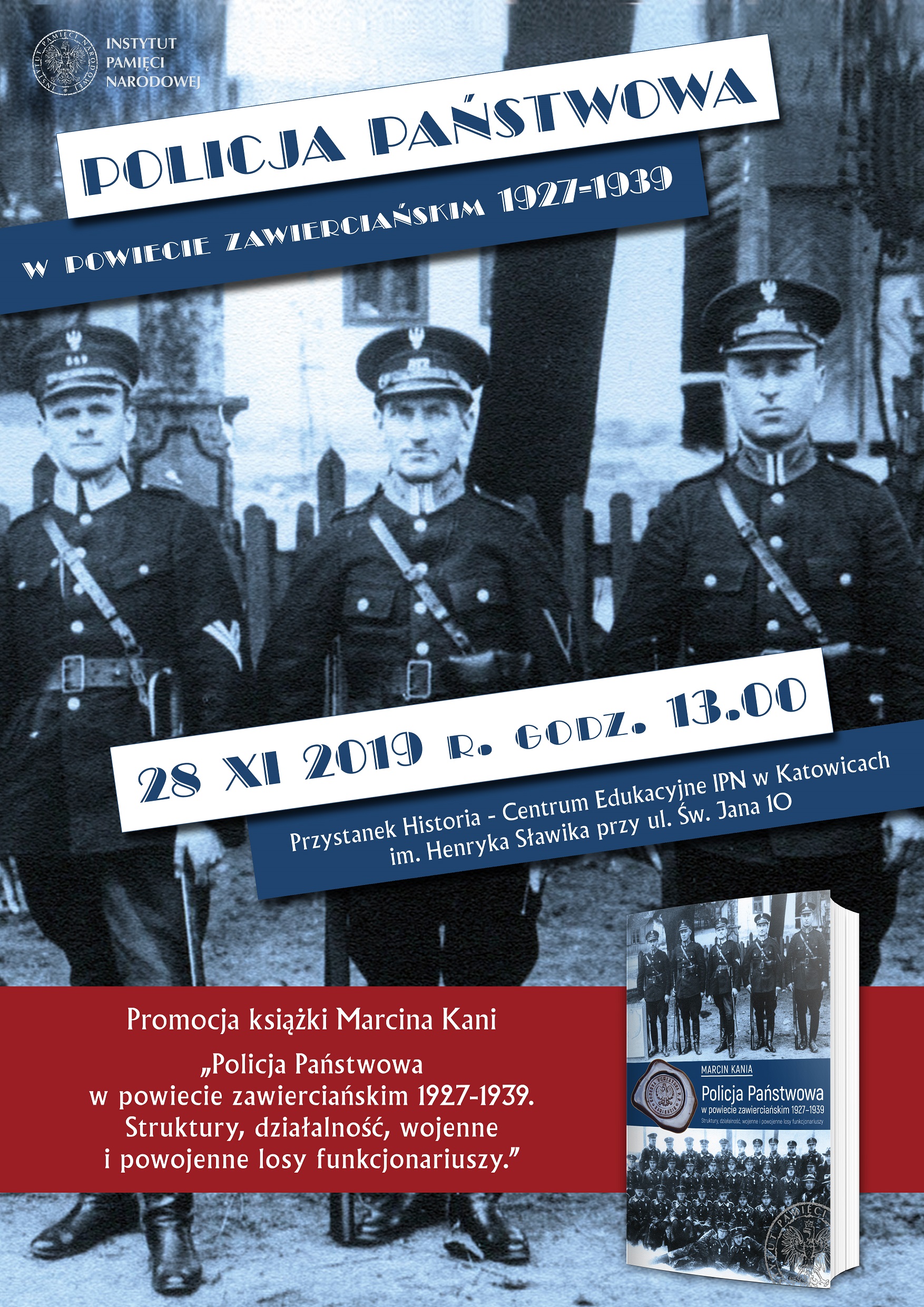 28 listopada 2019, o godz. 13.00, w Centrum Edukacyjnym IPN w Katowicach im. Henryka Sławika „Przystanek Historia” (ul. św. Jana 10 III p.) odbyła się promocja książki Marcina Kani „Policja Państwowa w powiecie zawierciańskim 1927–1939. Struktury, działalność, wojenne i powojenne losy funkcjonariuszy”.