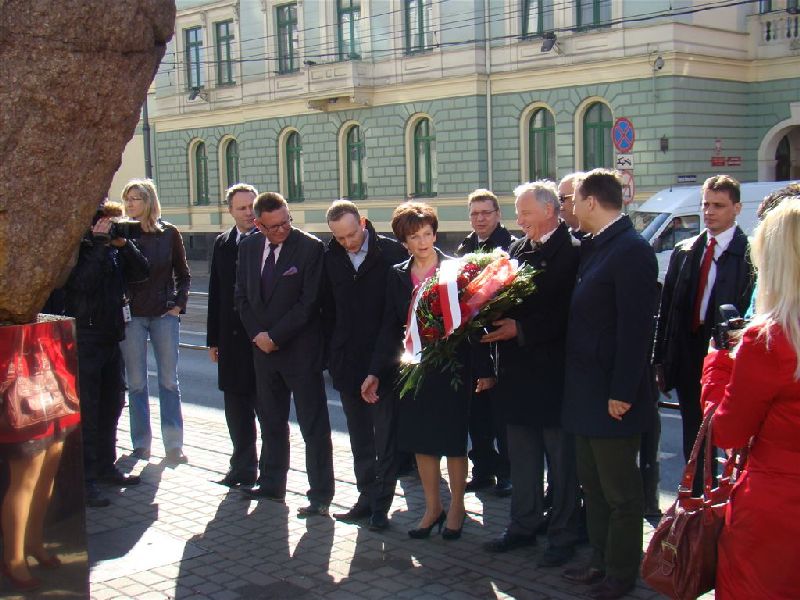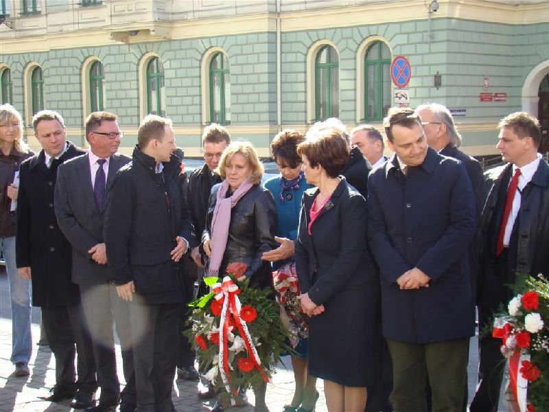 Uroczyste obchody wydarzeń 19 marca 1981 r., rozpoczęły się o godz. 10.00 złożeniem kwiatów pod obeliskiem upamiętniającym wydarzenia kryzysu bydgoskiego oraz pod tablicą pamiątkową przy wejściu do Kujawsko-Pomorskiego Urzędu Wojewódzkiego w Bydgoszczy (ul. Jagiellońska 3). W tej części uroczystości wziął udział Minister Spraw Zagranicznych – Radosław Sikorski.