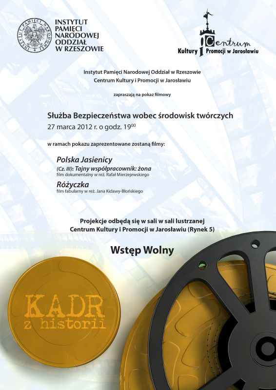 W ramach cyklu przeglądów filmowych „Kadr z historii…” 27 marca 2012 r. w sali lustrzanej Centrum Kultury i Promocji w Jarosławiu (ul. Rynek 5) pod hasłem „Służba Bezpieczeństwa wobec środowisk twórczych” odbył się pokaz filmów: „Polska Jasienicy”, cz. III pt. „Tajny współpracownik: żona” w reż. Rafała Mierzejewskiego oraz „Różyczka” w reż. Jana Kidawy-Błońskiego.