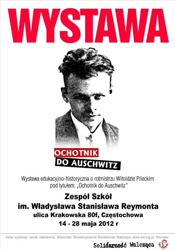 W dniach od 14 do 28 maja 2012 r. w Zespole Szkół im. Władysława Stanisława Reymonta w Częstochowie (ul. Krakowska 80f) jest prezentowana wystawa „Rotmistrz Witold Pilecki – ochotnik do Auschwitz”. Ekspozycja została przygotowana przez Jacka Jaśkiewicza ze Stowarzyszenia Solidarność Walcząca. Organizatorem prezentacji wystawy jest OBEP IPN w Katowicach we współpracy z Zespołem Szkół im. Władysława Stanisława Reymonta w Częstochowie i Stowarzyszeniem Solidarność Walcząca we Wrocławiu.