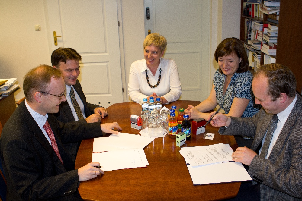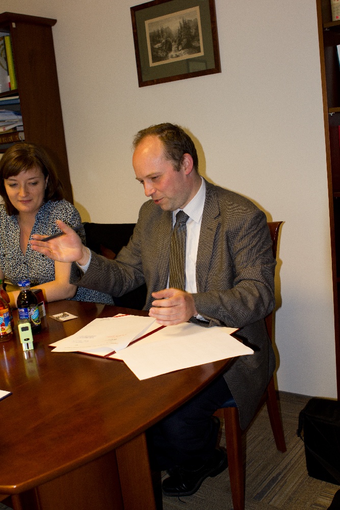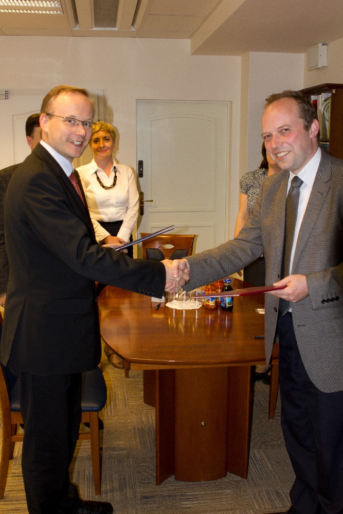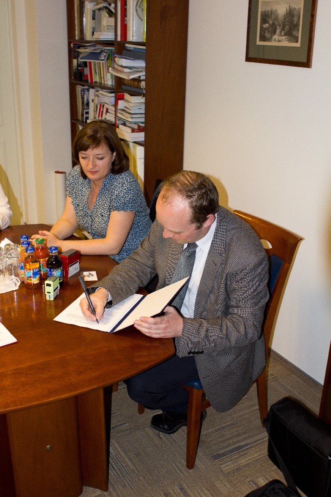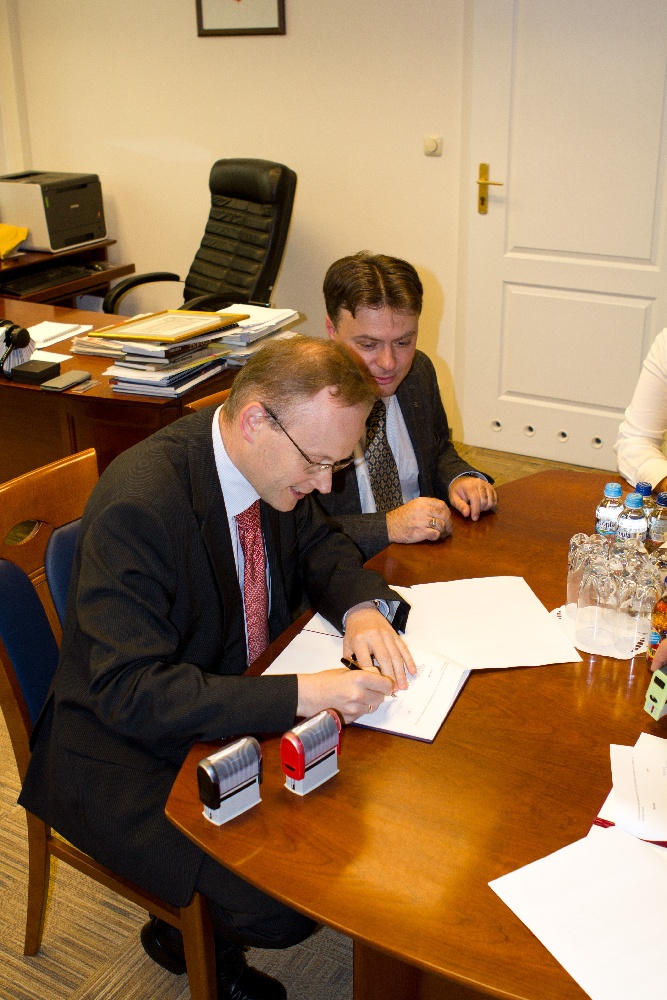 Na zdjęciach: Prezes IPN Łukasz Kamiński i Dyrektor Muzeum Jana Pawła II i Prymasa Wyszyńskiego dr Paweł Skibiński w trakcie podpisania porozumienia o współpracy. Warszawa, IPN, 6 czerwca 2012