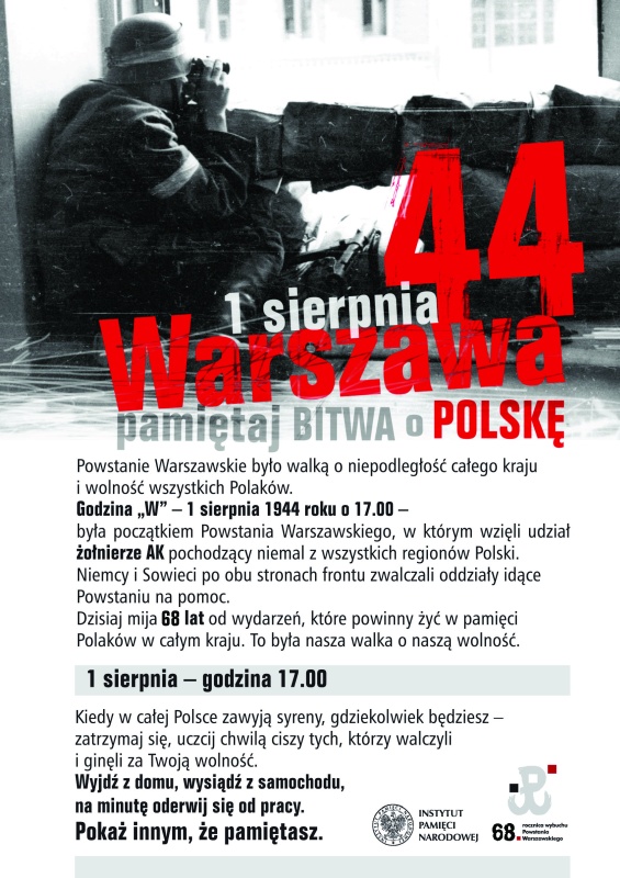 Uczcijmy 68. rocznicę Powstania Warszawskiego
