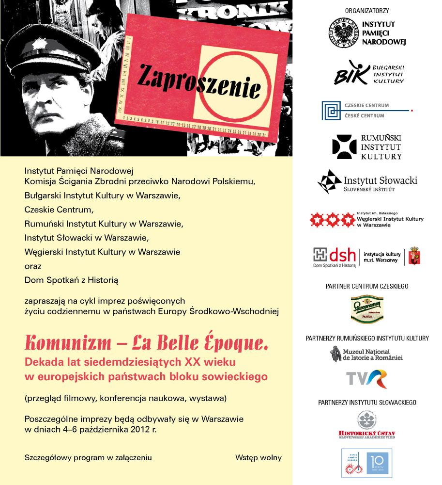 Instytut Pamięci Narodowej, Bułgarski Instytut Kultury w Warszawie, Czeskie Centrum, Rumuński Instytut Kultury w Warszawie, Instytut Słowacki w Warszawie, Węgierski Instytut Kultury w Warszawie oraz Dom Spotkań z Historią zorganizowały cykl imprez poświęconych życiu codziennemu w państwach Europy Środkowo-Wschodniej