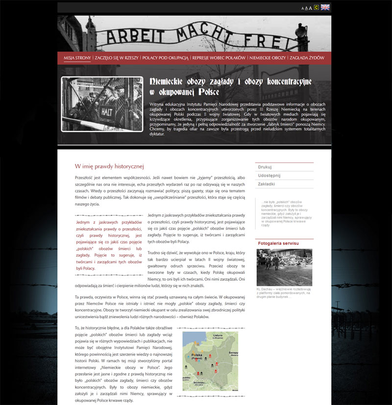 1 września, w dniu rocznicy agresji Niemiec na Polskę, Instytut Pamięci Narodowej uruchomił pod adresem truthaboutcamps.eu witrynę edukacyjną poświęconą niemieckim obozom zagłady i obozom koncentracyjnym stworzonym przez Niemcy na ziemiach polskich. Witryna jest dostępna w językach angielskim i polskim. Portal został przygotowany przez historyków z IPN przede wszystkim z myślą o odbiorcach zagranicznych. Wciąż bowiem pojawiają się w światowych mediach i oficjalnych wystąpieniach wypowiedzi o „polskich obozach śmierci”. Jest to nie do przyjęcia – są to wypowiedzi nieprawdziwe. Pełną i jedyną odpowiedzialność za stworzenie „fabryk śmierci” ponoszą Niemcy.