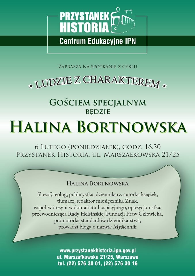 Z cyklu „Ludzie z charakterem” spotkanie z Haliną Bortnowską – Warszawa, 6 lutego 2012, Przystanek Historia, Marszałkowska 21/25