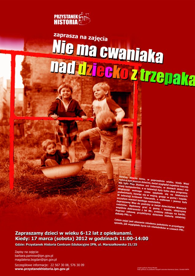 „Nie ma cwaniaka nad dziecko z trzepaka” – zajęcia z cyklu „Rodzinna sobota” – 17 marca 2012, Warszawa, Centrum Edukacyjne IPN Przystanek Historia, ul. Marszałkowska 21/25