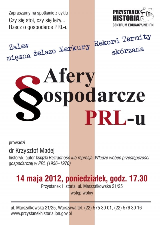 Spotkanie z cyklu „Czy się stoi, czy się leży… Rzecz o gospodarce PRL-u” – Warszawa, 14 maja 2012, Centrum Edukacyjne IPN Przystanek Historia, ul. Marszałkowska 21/25