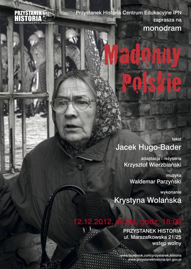 „Madonny polskie” – interpretacja sceniczna reportażu Jacka Hugo-Badera – Warszawa, 12 grudnia 2012, „Przystanek Historia” – Centrum Edukacyjne IPN im. Janusza Kurtyki, Marszałkowska 21/25