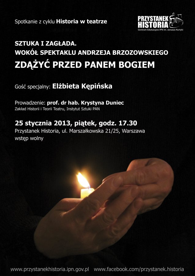 Z cyklu „Historia w teatrze”: „Sztuka i Zagłada. Wokół spektaklu Andrzeja Brzozowskiego »Zdążyć przed panem Bogiem«” – Warszawa, 25 stycznia 2013