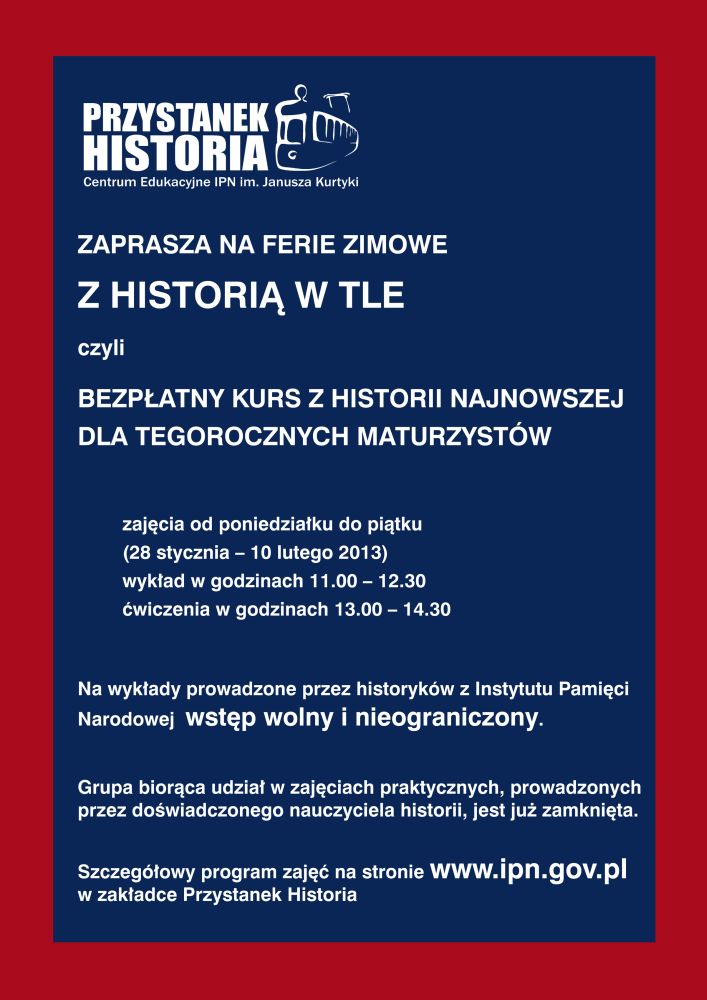 Ferie zimowe z historią w tle, czyli bezpłatny kurs z historii najnowszej dla tegorocznych maturzystów – Warszawa, 28 stycznia – 10 lutego 2013