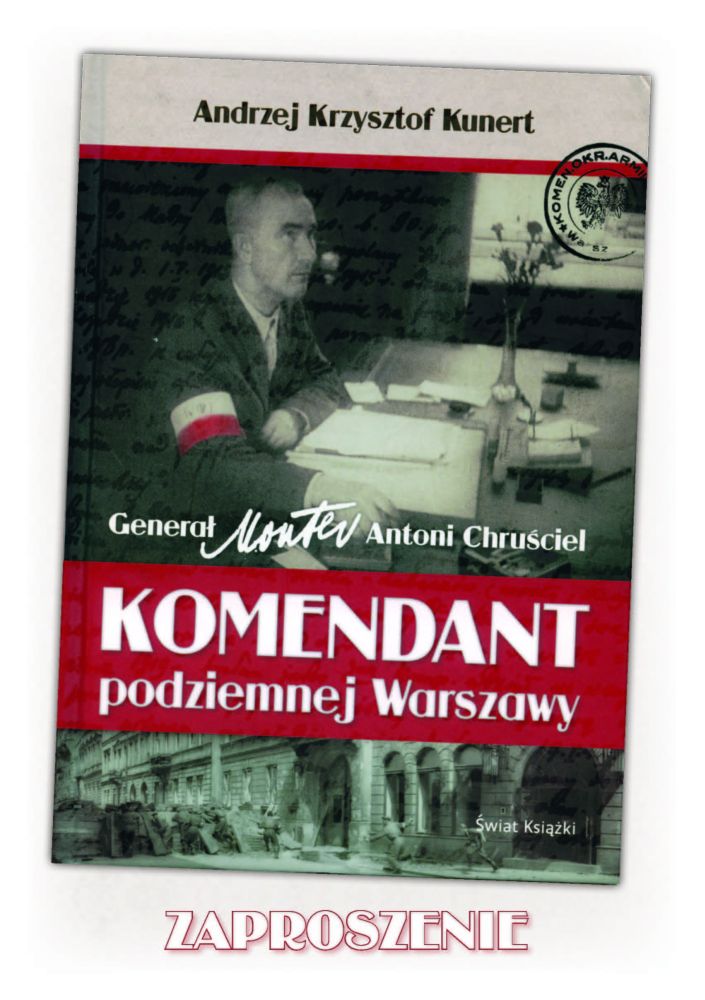 Stowarzyszenie „Wspólnota Polska” Oddział w Warszawie zaprasza na spotkanie autorskie z dr hab. Andrzejem Krzysztofem Kunertem, poświęcone jego najnowszej książce „Generał Monter Antoni Chruściel. Komendant podziemnej Warszawy”. W spotkaniu wezmą udział: prof. Krzysztof Komorowski, który dokona prezentacji publikacji, pani Jadwiga Chruściel, córka generała, a także płk Zbigniew Niemiec i Włodzimierz Graf.