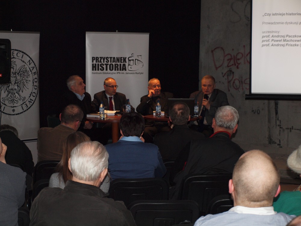 Spotkanie połączone było z panelem dyskusyjnym pt. „Czy istnieje historiografia IPN?”. Dyskusję poprowadził prof. Andrzej Wierzbicki (IH PAN), wzięli w niej udział prof. Andrzej Paczkowski (ISP PAN, Collegium Civitas), prof. Paweł Machcewicz (Muzeum II Wojny Światowej, UW) i prof. Andrzej Friszke (ISP PAN, Collegium Civitas).