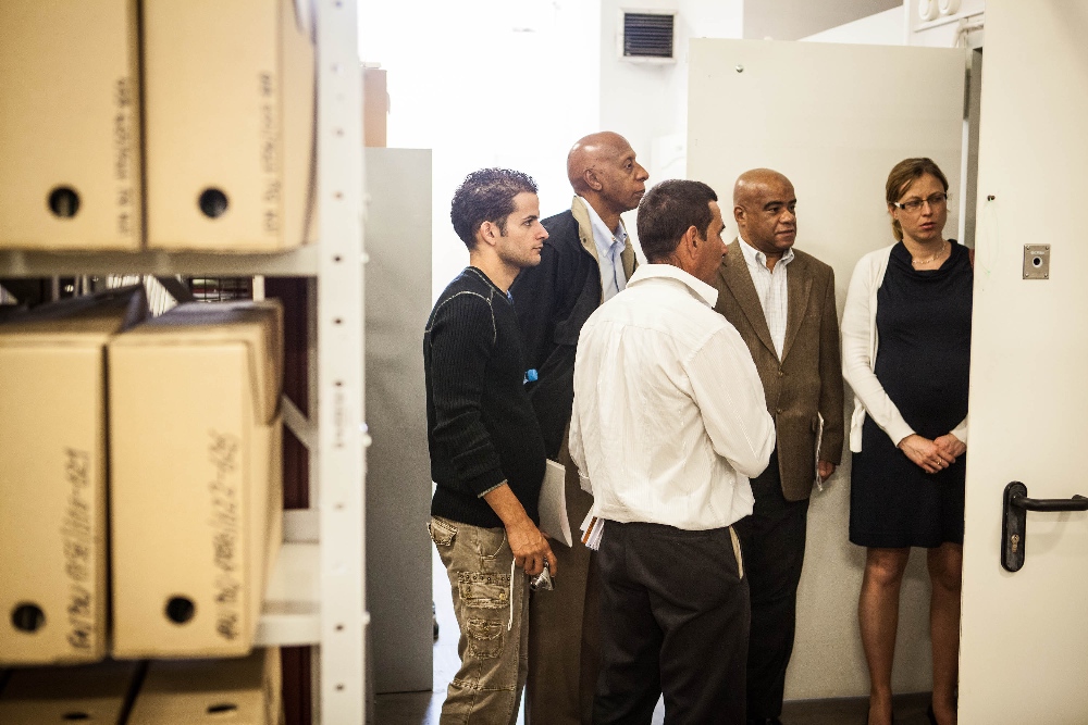 Goście z Kuby zostali oprowadzeni po archiwach Instytutu przez Dyrektora Biura Udostępniania i Archiwizacji Dokumentów dr. Rafała Leśkiewicza, który przedstawił zarys prac archiwalnych wykonywanych w IPN koncentrując się na materiałach zachowanych po komunistycznej bezpiece oraz na sposobie ich opracowywania. Goście zainteresowani byli krótkim pokazem filmów archiwalnych z okresu PRL, które dotyczyły wizyt państwowych oficjeli komunistycznych (w tym Fidela Castro) w Polsce.
