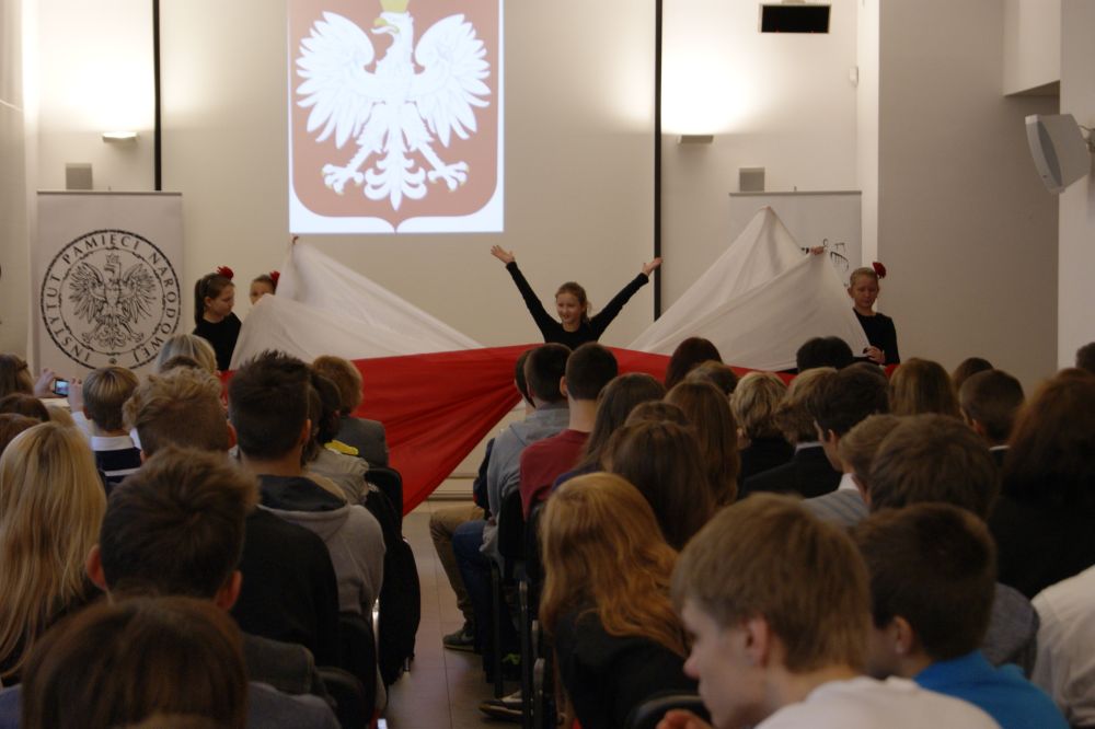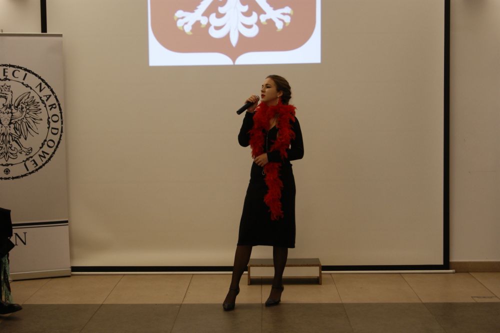 W surowych murach sali konferencyjnej wykonawcy zaprosili nas do świata przedwojennej Polski – ubrani w stylowe suknie i fraki, misternie uczesani i umalowani, recytowali wiersze Norwida, Kasprowicza, Lechonia i Gałczyńskiego, śpiewali pieśni legionowe Wojenko, wojenko, Rozkwitały pąki białych róż, Ułani, ułani, w rytm muzyki zaprezentowali autorskie układy choreograficzne. Dzięki doskonałemu wykonaniu, w które włożyli mnóstwo pracy i wiele serca, odczuwało się radość tamtych dni, kiedy to po 123 latach zaborów żołnierze prowadzeni przez Józefa Piłsudskiego wywalczyli dla Polski Niepodległość.