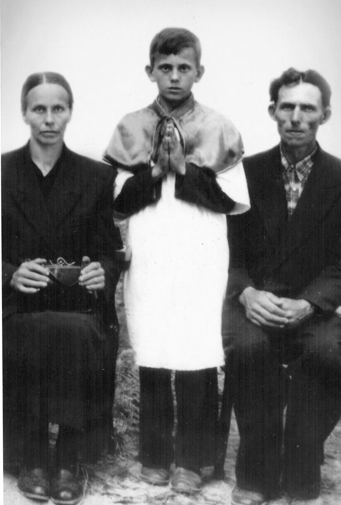 Na fotografii: późniejszy beatyfikowany i męczennik Kościoła katolickiego jeszcze jako ministrant z rodzicami: Władysławem i Marianną Popiełuszko, zdjęcie pochodzi z końca lat 50.