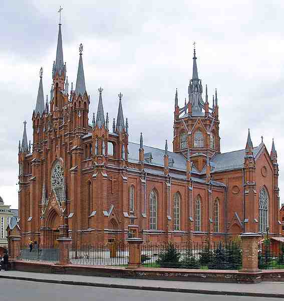 Wyświęcona w 1911 r. neogotycka świątynia, wraz z całym krajem, przechodziła dramatyczne koleje losu. Została zamknięta w 1937 roku i przejęta przez państwo. Księży i wiernych zdziesiątkowały stalinowskie represje, sam budynek ucierpiał w trakcie niemieckich bombardowań podczas wojny. Od 1956 roku – po przebudowie wnętrza na gmach 4-piętrowy – w odebranym wiernym kościele urzędowały rozmaite sowieckie instytucje.