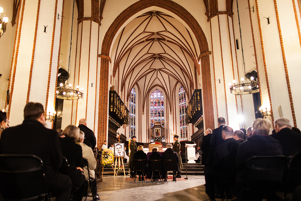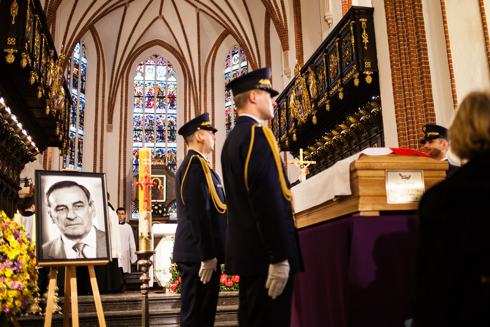 W warszawskiej archikatedrze św. Jana odprawiono mszę pogrzebową, której przewodniczył bp Rafał Markowski, a homilię wygłosił ks. prałat Jan Sikorski. We mszy świętej – poza najbliższą rodziną zmarłego – uczestniczyli m.in. Prezydent Bronisław Komorowski z żoną Anną, prezes PiS Jarosław Kaczyński, premier Donald Tusk, marszałkowie Sejmu i Senatu Ewa Kopacz i Bogdan Borusewicz oraz prezes NIK Krzysztof Kwiatkowski. IPN reprezentowała Zastępca Prezesa Instytutu Agnieszka Rudzińska.