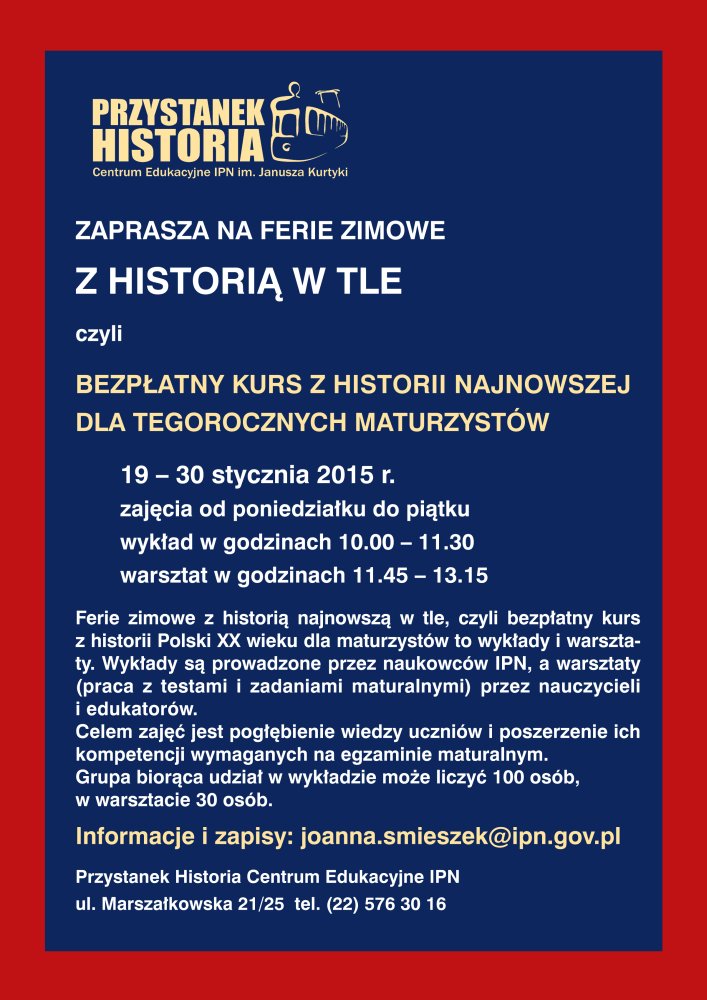 „Ferie zimowe z historią najnowszą w tle” – bezpłatny kurs z historii Polski XX wieku dla maturzystów – Warszawa, 19 stycznia – 1 lutego 2015