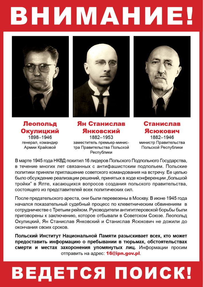 Комиссия преследования преступлений против польского народа – следственный отдел Института национальной памяти – в 2003-2009 годах вела расследование, касающееся осуждения в Москве руководителей польского подполья. Расследование однако было прекращено в связи с отказом Главной военной прокуратуры Российской Федерации оказать юридическую помощь по этому делу.