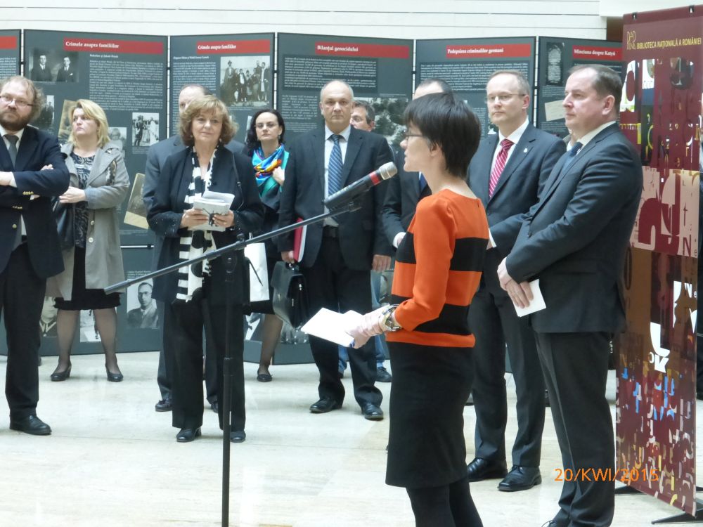 Podczas otwarcia wystawy 20 kwietnia 2015 r. głos zabrali: Ambasador RP w Rumunii – Marek Szczygieł, Prezes IPN – dr Łukasz Kamiński, Dyrektor Biblioteki Narodowej w Rumunii – Claudia Serbanuta, Doradca Prezydenta Rumunii – Andrei Muraru, Prezes Fundacji „Academia Civica” – Ana Blandiana i Prezes Instytutu Badania Zbrodni Komunistycznych i Diaspory Rumuńskiej (ICCMER) – Radu Preda.