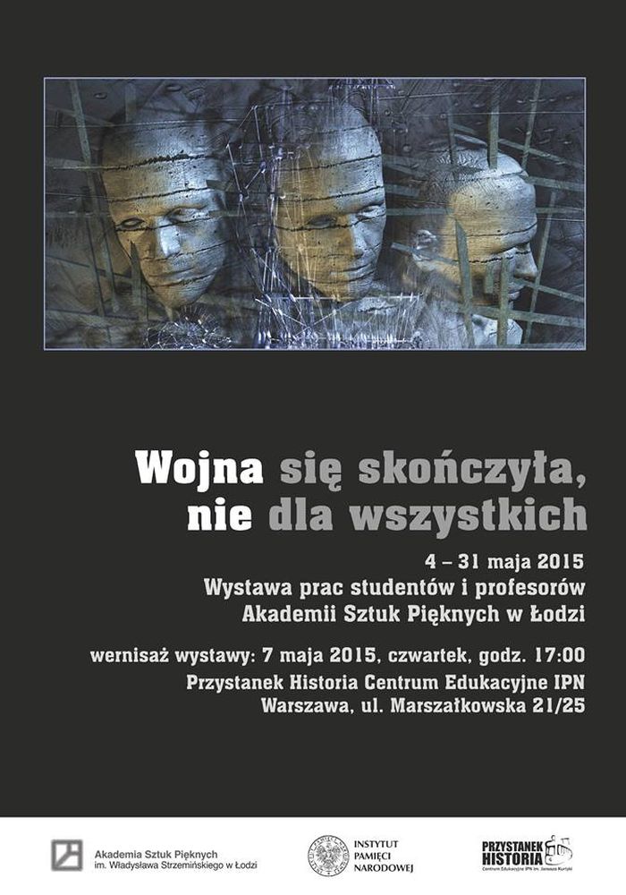 Przystanek Historia zaprasza na wystawę „Wojna się skończyła, nie dla wszystkich”, prezentującą prace profesorów i studentów Wydziału Grafiki i Malarstwa Akademii Sztuk Pięknych w Łodzi. To artystyczna wizja wydarzeń sprzed 70 lat – zakończenia II wojny światowej, które wielu narodom, w tym Polakom, nie przyniosło wyzwolenia. Wystawę, której wernisaż odbył się 7 maja, będzie można oglądać do 31 maja 2015. Jej kuratorem jest prof. Gabriel Kołat, prowadzący Pracownię Rysunku, Ilustracji i Komiksu na Wydziale Grafiki i Malarstwa w ASP w Łodzi.