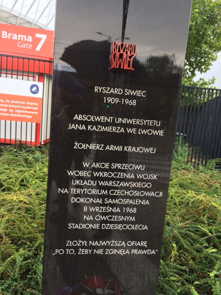 Na miejscu dzisiejszego Stadionu Narodowego był wówczas Stadion Dziesięciolecia. 8 września 1968 roku, podczas odbywających się tam dożynek, 61-letni księgowy z Przemyśla Ryszard Siwiec dokonał samospalenia w akcie sprzeciwu wobec haniebnej interwencji wojsk Układu Warszawskiego. Zmarł kilka dni później. Bezpieka na wiele lat ukryła prawdę o jego czynie. Dziś Siwiec ma ulice swojego imienia i pomniki. Władze Polski, Czech i Słowacji nadały mu najwyższe odznaczenia.