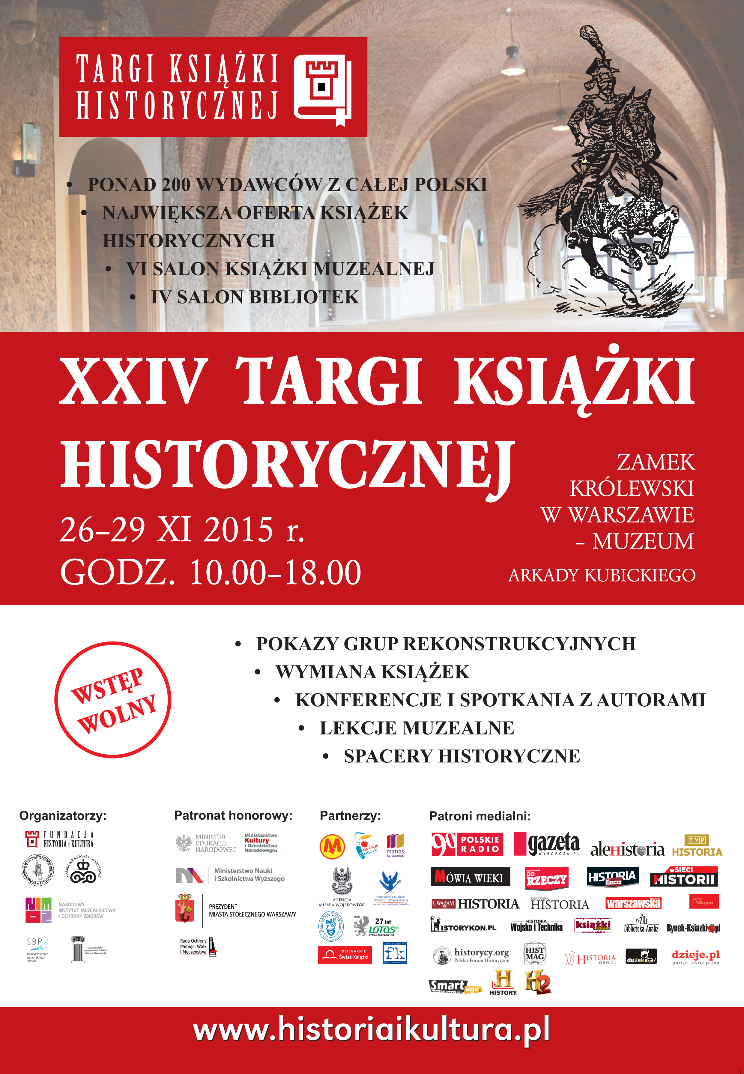 Ponad 200 wystawców, w tym także Instytut Pamięci Narodowej – to kolejna edycja najważniejszej i największej tego typu imprezy księgarskiej w Polsce. Zapraszamy na XXIV Targi książki Historycznej, które odbędą się w dniach 26–29 listopada w Arkadach Kubickiego na Zamku Królewskim w Warszawie. Targi otwarte będą codziennie, w godz. 10:00–18:00. Wstęp wolny.