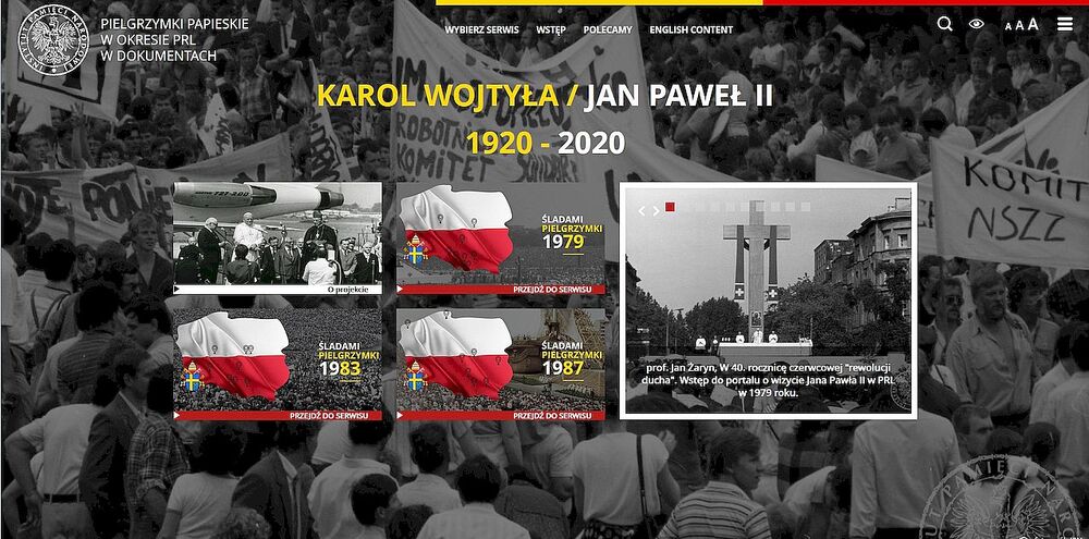 Instytut Pamięci Narodowej przygotował także portal tematyczny dotyczący wizyt papieża w Polsce w okresie PRL, który jest dostępny od 15 maja 2020 r. W serwisie można znaleźć dokumenty w wersji cyfrowej, fotografie SB, ulotki i wiele innych materiałów z Archiwum IPN.