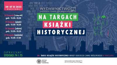 24/11/2022Targi książkiInstytut Pamięci Narodowej na XXX Targach Książki Historycznej – Warszawa, 24–27 listopada 2022